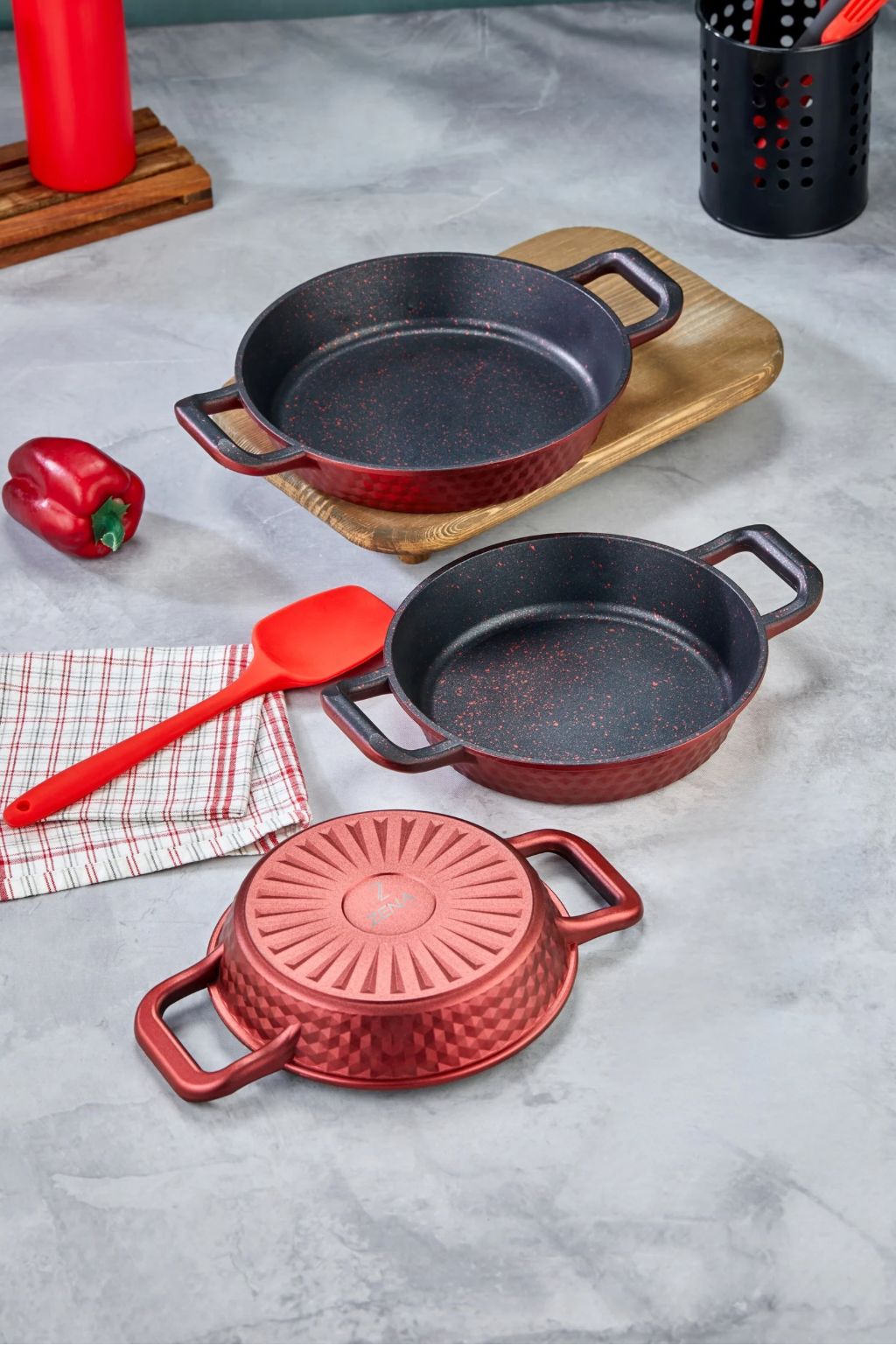 Mutfakta Şıklık ve Dayanıklılık Bir Arada! ZenaLiora 3’lü Döküm Titanyum Kaplama Sahan Seti, mutfağınıza estetik ve kaliteyi aynı anda getirir.