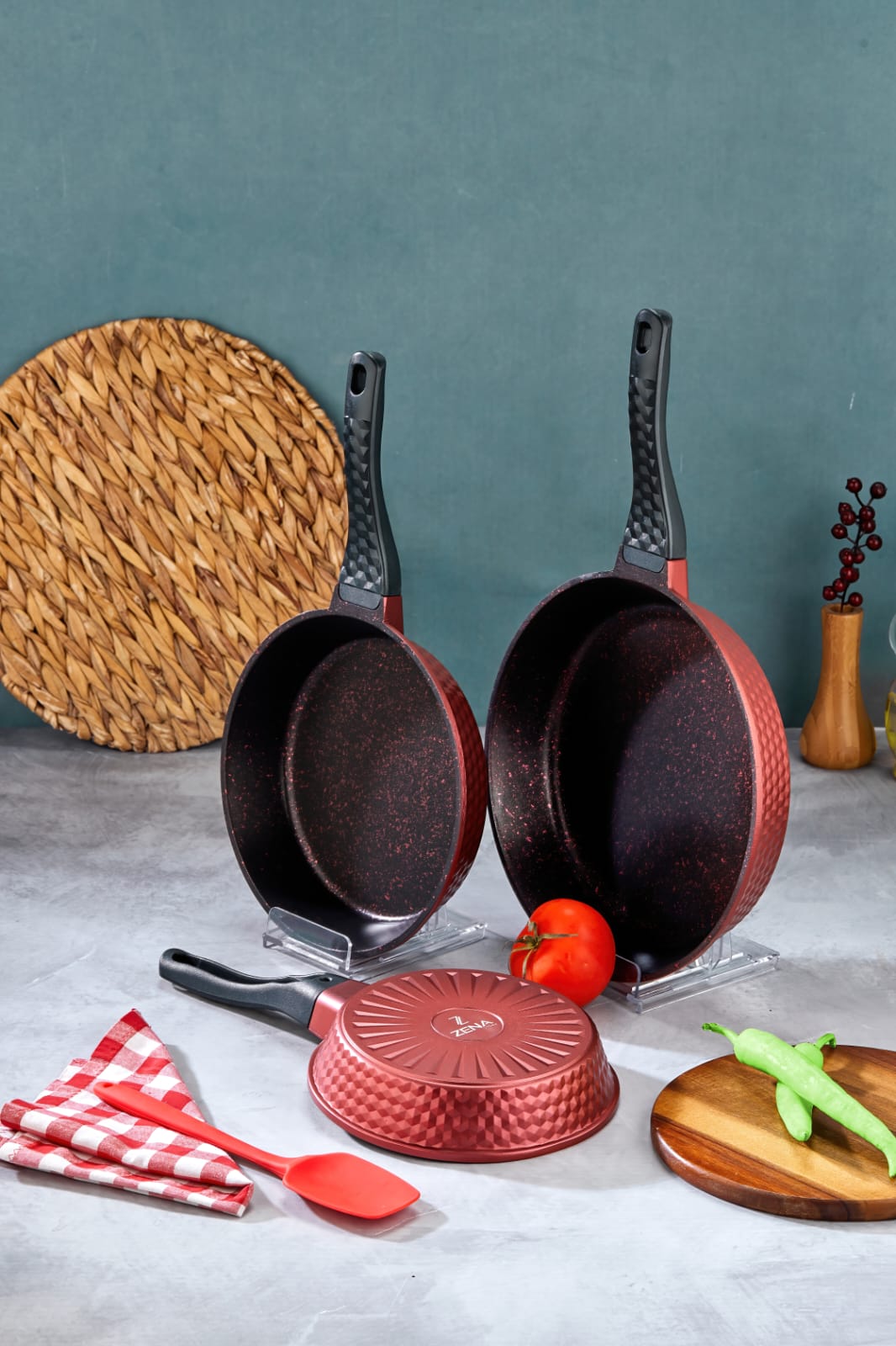 Ürün Özellikleri? Takım İçeriği:20 cm döküm tava24 cm döküm tava28 cm döküm tava? Malzeme ve Kaplama:Döküm gövde + Granit efektli yapışmaz yüzeyÇizilmeye karşı dayanıklı kaplamaKalın taban yapısı sayesinde uzun süre ısı koruma? Kullanım Avantajları:Yüksek ısıya dayanıklı yapıDüşük yağ ile pişirme imkânıIsıyı eşit dağıtır, yemekleri homojen pişirirKolay temizlenir, leke tutmazErgonomik sap tasarımı? Uygunluk:Tüm ocak tiplerinde kullanım (Indüksiyon hariç)*Günlük kullanım ve profesyonel pişirme için idealEt, balık, omlet, kahvaltılık, sebze ve sos tariflerinde mükemmel ? Tasarım:Modern ve estetik görünüm